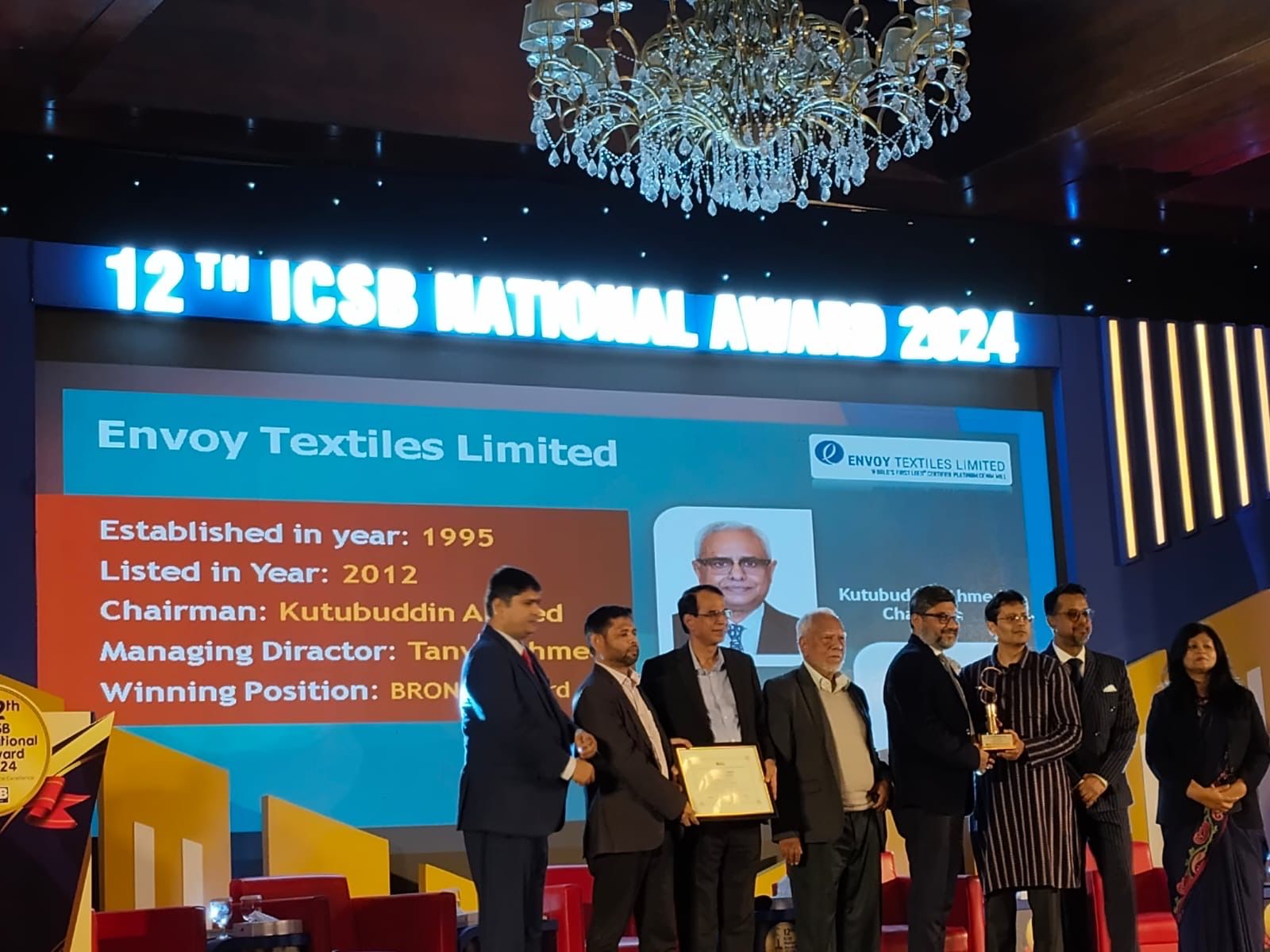 Envoy Textiles Limited has achieved a distinguished milestone by receiving the 12th ICSB National Award for Corporate Governance Excellence 2024 by the Institute of Chartered Secretaries of Bangladesh on 15 December 2025 in Dhaka. The ceremony was graced by Mr Sk. Bashir Uddin, Honourable Adviser, Ministry of Commerce, and Mr Lutfey Siddiqi, Special Envoy on International Affairs to the Chief Adviser. The award was received on behalf of Envoy Textiles by Mr Saiful Islam Chowdhury, Company Secretary, and Mr Mohammad Ataur Rahman, General Manager, Internal Audit. This recognition marks Envoy Textile’s fifth ICSB National Award, underscoring a continued commitment to transparency, compliance and governance excellence.